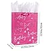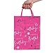 🎁Design: The medium paper gift bag features silver metallic "Happy Birthday" lettering and pretty star pattern on a pink background, come with nice strong ribbon handles and supportive reinforced bottom.