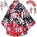 Package includes: Kimono robe , Belt, Backband, Silk folding fans,Hairstick -5 piece set