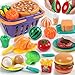 122-PIECE SET - This play food for kids kitchen set includes pretend play toy fruits, vegetables, meat, eggs, milk, juice, drinks, pizza, burgers, french fries, bakery items, bread, cake, donuts, cookies and ice cream. This play set provides all of the basic food groups for little ones to prepare and serve. Boasting 122 pieces, your children will feel like they have their own little food store at home to entertain them for hours on end.