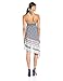 Pattern-block dress featuring V-neckline with tie-back halter strap and draped asymmetric hem