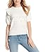 STYLE - Ruffle trim puffed short sleeve pullover sweater with crew neck and ribbed cuff and waistband on a pretty pointelle pattern design relaxed fit body.