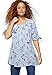 Decorated with a spring-fresh floral print, this tunic is accented with feminine pintucking & a tiered flounced hem. Scoop neckline. Button front with pintucking. 3/4 sleeves. Tiered flounce detail at bottom hem.