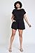 Cuffed short sleeve, elastic waistband, decorative drawstring, tie keyhole back, pockets