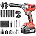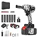 【Wide Application】21V cordless impact wrench kit delivers a max torque of 310ft-lbs with a max 3100 RPM impact, power enough to break off stubborn fasteners, rusty nuts and bolts in seconds. This power impact wrench set with 1/2'' chuck can be used for furniture installation, metal wood drilling, auto repair, large construction projects, heavy equipment maintenance or product assembly.