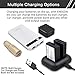 【 REAL TIME CHARGING STATUS DISPLAY 】The smart LED charger display the battery charging level real time to prevent your from frequent guessing how much your battery have been charged. it can charge either two batteries simultaneously or 1 battery from any USB Power source.