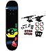 Comes fully assembled and ready to ride right out of the box with everything included: grip tape, deck, trucks, bearings, wheels, and hardware. 7 Ply Hardrock Maple with Stiff Glue Extra; the strongest water-base glue. Strong Pop and Longer Deck Life for withstanding any trick you can throw at it. Single deck press means same shape and concave every time. Carbon steel speed bearings keeps you rolling.