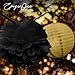 This kit contains: 9 tissue paper pom poms (3 Black, 3 Gold, 3 White); 8 paper lanterns (4 Gold, 4 White); 4 honeycomb balls (White); and a polka dot garland (6.5’ long)