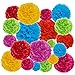 DIFFERENT COLORS AND SIZES: This kit contains a total of 20 tissue paper pom poms. It comes in seven different colors and five different sizes. Three red (1-6”, 1-10”, 1-14”), three orange (1-6”, 1-8”, 1-12”), three yellow (1-6”, 1-8”, 1-12”), three green (1-8”, 1-10”, 1-12”), three blue (1-8”, 1-10”, 1-14”), three purple (1-8”, 1-10”, 1-12”) and two pink (1-10”, 1-14”). The variety of sizes and colors make these pom poms perfect for creating a dynamic and eye-catching display.