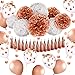 DIFFERENT COLORS AND SIZES: The kit includes 8 paper tissue pom poms (4 white, 4 rose gold in assorted sizes - 1 x 8”, 2 x 10”, 1 x 12” each color); 15 gleaming party tassels (14”); 12 premium latex balloons (6 rose gold, 6 confetti, 18”); 32' of curling ribbon; and a 6.5' elegant rose gold circle garland. These stunning decorations will effortlessly turn your venue into an awe-inspiring space for your guests. Seize the opportunity to create an unforgettable event!