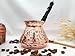 Style: Hammered thick Turkish coffee pot with different handmade motifs. Turkish coffee, Greek coffee and Arabic coffee is vey similar. It is known as ibrik or cezve in the Turkish culture and widely used in Arab culture as Arabic coffee pot and in Greek culture is called a briki.
