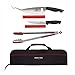 6 inch boning knife (wide blade), 15 tongs, includes edge guards to keep blades covered and a carrying case for storage or take the Kit on the go to your next BBQ or tailgating party!
