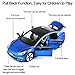 Pull Back Car Function: The two sides of toy car doors could be opened. And the front cover can be opened. It is a pullback car, no batteries needed, gently pull it back and release to move forward.