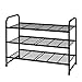 MULTIPURPOSE 3-TIER RACK - Stores up to 12 pairs of shoes for men, women, and children. Rack holds up to 9 shoes on shelves. Store 3 pairs of low-profile shoes like flats, sandals, and sneakers beneath the rack. 5.5” of space between tiers, 3.5” beneath the rack.