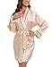 [ Kimono Robe Features ]: Short silk robe style,long sleeve,v neck,contrast binding,solid color,come with loops around the waist and a sash to tie