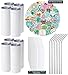 What will you get: 8 pcs 20oz Straight Sublimation Tumblers, 8 pcs Push-Slide Lid, 8 pcs Stainless Steel Straw, 8 pcs Shrink Wrap, 2 Straw Brush,50 pcs waterproof DIY stickers. The tumbler body is straight and sprayed with a special coating, so you can DIY various photo tumblers and design the cup with any pattern you like. Use your imagination to create unique cups, perfect for making birthday gifts, holiday gifts etc.