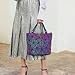 Geometric handbag size & packing. 13.5"*11"*3"(LxHxW) .Zipper and clasp closure,1PC x Luminous Handbag,1PC x luminous shoulder strap. 1* main pocket; 2* inner pockets, 1* zipper pocket.