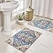 -- BATH MAT WITH HEAVY DUTY RUBBER BACKING --Estmy boho tribal bathroom rug is constructed with heavy duty and durable upgraded TPR rubber backing which helps to prevent shifting and skidding. And it will hold up for years to come, unlike many other brands, whose rubber backing tends to wear and peel off after multiple washes. To prevent from slipping, please make sure the surface under the mat is smooth, clean and dry.
