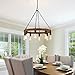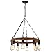 ใRustic Farmhouse StyleใThis retro chandelier features 8 lights dropping down from openwork-design round shaped wood frame with faux-rust finish metal, adds more charming of farmhouse-inspired design and brings enough bright light in your dining room, living room, entryway, foyer and so on.