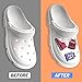 【Easy to Use】 To install the shoe charm, please hold it and insert it from 45 degree angle. To take it off, reach into holes of shoes, use your fingers to push the bottom of the shoe charm slightly till it comes out.