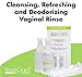 Delivered in the form of a cleansing, refreshing, and deodorizing vaginal rinse