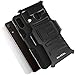 Hard back case clips into a side mount belt clip swivel holster for carrying convenience during work, travel or play