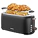 【1.5" EXTRA-WIDE 4-SLOT TOASTER】The long slot toaster 4 slice features 1.5'' extra-wide slots that can accommodate variously wide bread, including bagels, muffins, waffles, and Texas toast. It also has an anti-jam function and a high-lift design to ensure a safe and practical toasting experience.