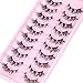 ❤️🔥Lashes Natural Look Effect: Our 10 pairs natural eyelashes consists of ultra thin clear lash band and wispy mink, false eyelashes are very comfortable to wear. Cat eye lash style, super fluffy, fine crossed lash effect, fake eye lashes are as natural as lash extensions.