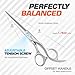 CONVENIENT DESIGN: The super sharp blades can easily trim hair and achieve desired results with ease. The ideal weight of scissors allows perfect balance and stability. Its smooth stainless steel texture and sharp blades don't let hair get caught.