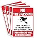 Highly visible red, black, and white design is sure "No Trespassing, This Property is Protected by Video surveillance, Trespassers Will be Prosecuted Sign" to catch the attention of possible intruders