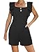 DESIGN: Summer short rompers for women, cut with a square neckline and open back. Rendered with adjustable criss cross straps for a playful and supportive look! U neck, Side pockets, Elastic Waist shorts.