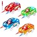 🚕 [Fourfold Happiness & Funny Stickers] 4 different colors of light up track cars can attract kids' attention and make them feel happy. Children can decorate their cars with funny stickers, which are suitable for the transparent car body, making the car attention-grabbing and special. Race track cars can not only be enhanced family relationships but also educated children about traffic safety by these track cars