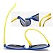 Adjustable, moisture-wicking, elastic neoprene strap. The adjustable shoulder straps of the sunglasses provide a more stable fit. Strap Material: 95% Polyester, 5% Neoprene. As your baby grows, the shoulder straps can be adjusted to your baby's head circumference or removed