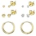 💃[TITANIUM STUD EARRINGS]: One order includes 6 pairs classic titanium earrings, ball gold stud earrings; cz gold stud earrings, titanium hoop earrings, easy to match your three earring piercing hole.