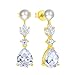💗【Materials】The pearl drop jewelry earrings for women, Made of Quality 925 Sterling Silver and gold plated, Leaf Teardrop made in 5A Cubic Zirconia, Highly Polished, Advanced Electroplating Technology, Smooth Surface, no fading, no allergies.