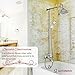 Features:Water use information:Maximum Flow Rate:1.4gpm. 5.29L/min.3-Functional shower fixture with luxury pattern,diverter switches between top shower,tub spout hand spray