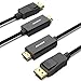 Convenient cable directly connects a DisplayPort (DP, DP++, DisplayPort++) equipped computer to an HDTV, monitor, or projector with HDMI input