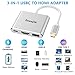 <6 in 1 Camera Card Reader Adapter>Too many adapters & card readers to bring? No worries. You need only one lightning adapter hub. 2 standard USB ports to connect devices such as flash drive or camera or USB cable to MIDI Keyboard, Mouse, etc. 1 HDMI port with vivid 1080P digital AV output. 2 SD card slots (one Micro SD) with superior data-storing versatility, and a charging port---All possibilities in one hub!