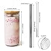 【Practical Design】: The glass cups with lids and straws could be serving any beverage.Each set has 2 24oz glass tumblers, 2 stainless steal straws, 2 100% bamboo lids, 1 cleaning brush, practical combination kit
