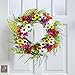Green wreath's bright colors and lush greenery make this wreath a wonderful addition to your home, It features yellow daisies accented with red pink, purple and blue flowers, delicate ferns and twining ivy, It will provide your home a natural and full of vitality feeling.