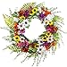The external diameter of spring summer wreath is around 17.7 inches.The large door wreath is handmade using many types of silk wildflowers/silk daisy/silk leaves/plastic ferns The flower wreath base is made of iron coils.