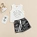DESIGN: Sun print round neck sleeveless tank tops,match classic camouflage elastic waist shorts, making both the overalls and boys more adorable.