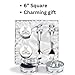QUALITY CRAFTSMANSHIP Each of the finely polished, silverplated pieces are carefully nestled in the elegant, satin-lined white gift box. The two round containers measure 2 ¾” in diameter and the overall boxed set is 6” square allowing for display on a shelf in the nursery, child’s memory box, or anywhere of your choice.