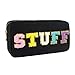 【Product Configuration】:4 pcs stoney patch bags with chenille lettering patches 1 pcs chenille letter STUFF makeup bag 1 pcs chenille letter FACE makeup bag 1 pcs chenille letter SKIN makeup bag 1 pcs chenille letter HAIR makeup bag