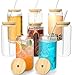 🍍【DURABLE WOODEN LIDS】3 durable wooden lids made of natural healthy wood.Compared with other plastic lids, wooden lids are more durable and less prone to deformation.The wooden lid has good seal, which not only prevents liquids from spilling, but also prevents dust from entering, keeping the beverage fresh.