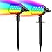 [2-In-1 Installation]- You can use it as landscape spotlights or wall light. Just insert into the ground with included ground stake or install on the wall with included screws and wall bracket. Hassle-free installation, convenient and portable. Perfect for patio, porch, pool, yard, garden, driveway, pathway, etc. The color solar spotlights are ideal for decorating your trees, gardens, flowers, walls, or your house in festivals or parties, etc.