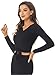 Women Solid Color V Neck Long Sleeves Straps at Back Stretchy Crochet Dance Tops