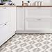 Retro-inspired peel and stick floor tile with geometric floral motifs