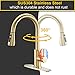 3-Function Sprayer:Gold Kitchen faucet with pull down sprayer have three water outlet modes, sprayer, stream and pause, making cleaning more convenient and efficient, saving your kitchen housework time and enjoy family life.