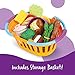 32 PIECES: Includes one shopping basket, one bushel basket and 30 food items made of soft, crush-resistant plastic