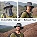 All round protection hat with detachable face cover& neck flap. The feature is 360° sun protection with UPF 50+ UV fabric. Wide brim,removable neck flap, face cover that protect your face neck and ears hurt from the sun ray. And also you could have a variety of method wear this hat as its neck flap and face cover is detachable.